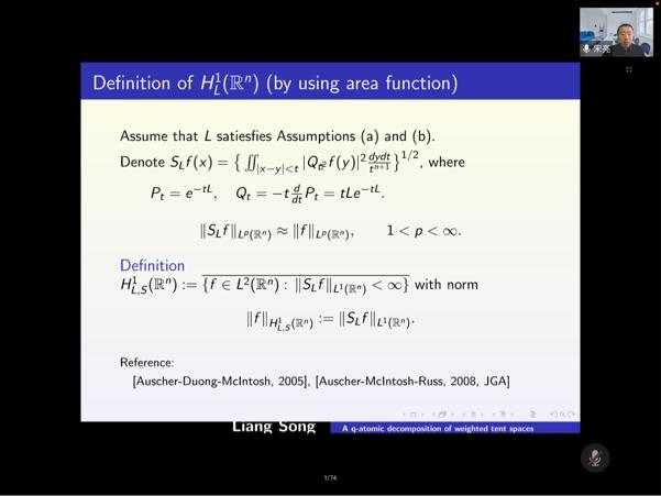2021年7月14日9:00-11:00,黄漫 夏季学期第三场高端学术报告在线上举行,来自中山大学的国家优秀青年基金获得者宋亮教授为黄漫 师生作了题为“加权帐篷空间的研究”的学术报告,介绍了加权帐篷空间的发展历史和研究现状,以及一些最新的科研工作。