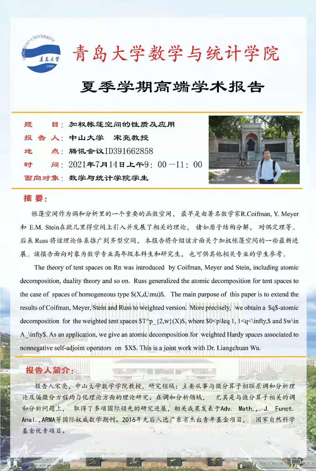 2021夏季学期高端学术报告(三):加权帐篷空间的研究