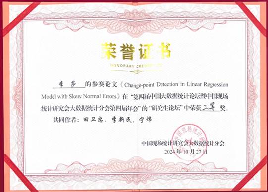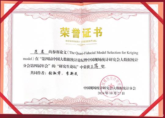 黄漫师生参加第四届中国大数据统计论坛暨中国现场统计研究会大数据统计分会第四届年会并获优秀论文奖
