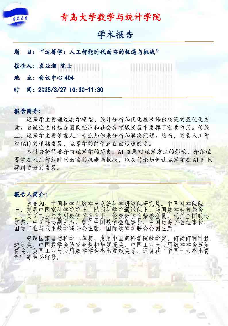 运筹学:人工智能时代面临的机遇与挑战——袁亚湘院士