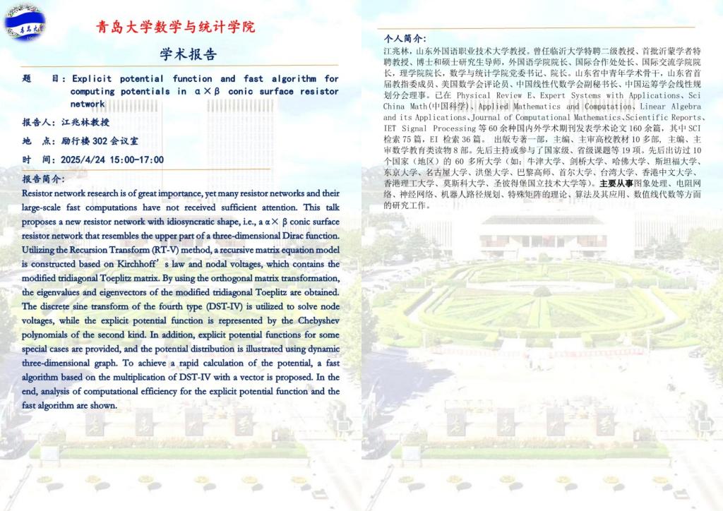 Explicit potential function and fast algorithm for computing potentials in α×β conic surface resistor network