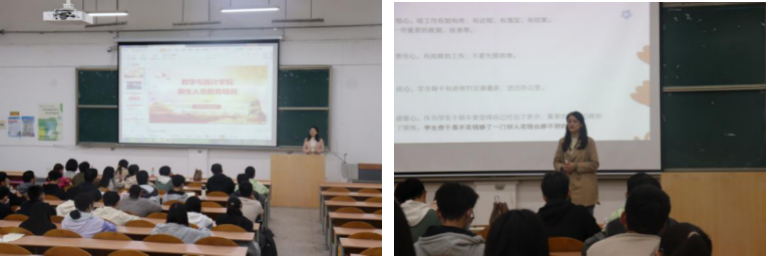 魏小平从入党动机谈起,带领大家回顾了党光荣艰苦的岁月,使学生认识到今天幸福生活的来之不易,增强学生对党的认识,坚定理想信念。随后介绍了党员发展的要求及流程,鼓励新生们要以党员的标准严格要求自己,以信仰点亮人生;李玲慧结合详实的工作案例,介绍了如何做一名合格的大学学生干部,寄语学生骨干认真负责对待工作和学习,在今后的大学学习生活中不断进步。