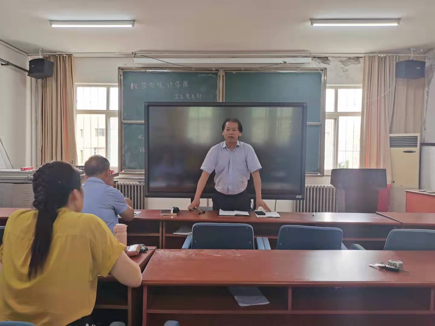 高红伟就深入学习贯彻习近平总书记“七一”重要讲话精神和努力做好讲话精神与中心工作融合,对近期学院相关工作进行部署。高红伟说,要持之以恒推进党史学习教育取得新进展新成效,促使党史学习教育与中心工作高度融合。上半年,在学院班子带领下,全院教师努力拼搏,学院终于成功获批教育部数学学科一级博士点,实现了学院全体教师多年心愿,取得学院事业发展重大进步。展望下半年重点工作,高红伟指出,现在要立刻启动学院十四五发展规划,谋划新一轮学院事业发展。要积极投身学校“冲一流”建设和学科群建设中去,在立足自身、做强自己的同时,抢抓发展机遇,做好与其他学科的交叉融合,更好、更快地适应学校事业发展新要求,并在新的发展背景中寻找自己不可替代的位置和作用。要聚焦服务学生学习、生活,服务教师,服务社会等,扎实开展 “我为群众办实事”实践活动,努力推动实践活动落地见效。要深化党史学习教育成效,在融入和服务新发展格局上有新举措、新作为、新成效,为学院事业“十四五”和中长期改革发展起好步、开新局。