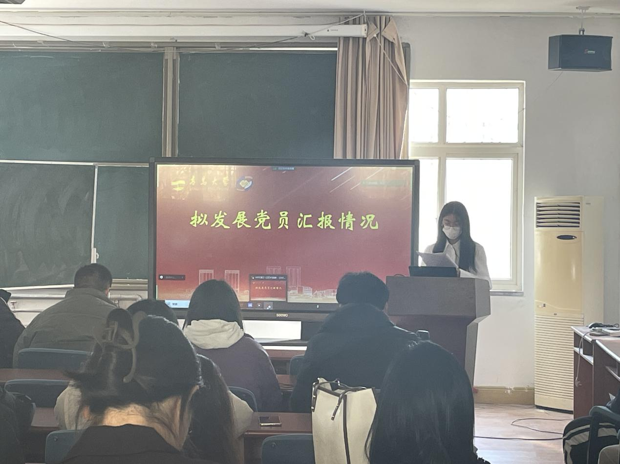 会议由本科生党支部书记朱雨彤同志主持支部全体党员和拟发展预备党员参加大会根据《中国共产党章程》和《中国共产党发展党员工作细则》要求,讨论吸收殷博文等22党员发展对象成为中国共产党预备党员的事宜