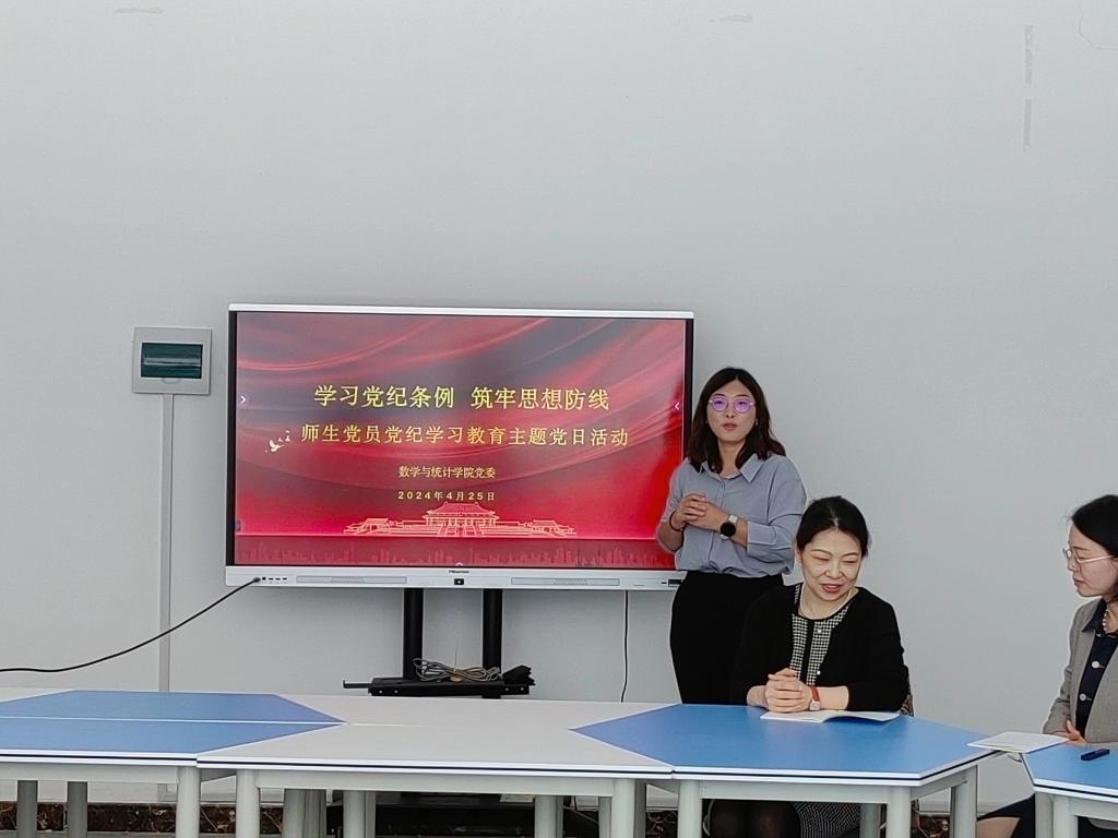 为高质量组织开展党纪学习教育,锤炼廉洁、担当的师生队伍,4月25日,数学教育党支部、公共教学与机关党支部和本科生党支部于创新创业学院201会议室联合举办师生党员党纪学习教育主题党日活动。学院党委书记刘琪、副书记魏小平出席活动,党员教师、本科生党员参加活动,本科生党支部书记朱雨彤主持。