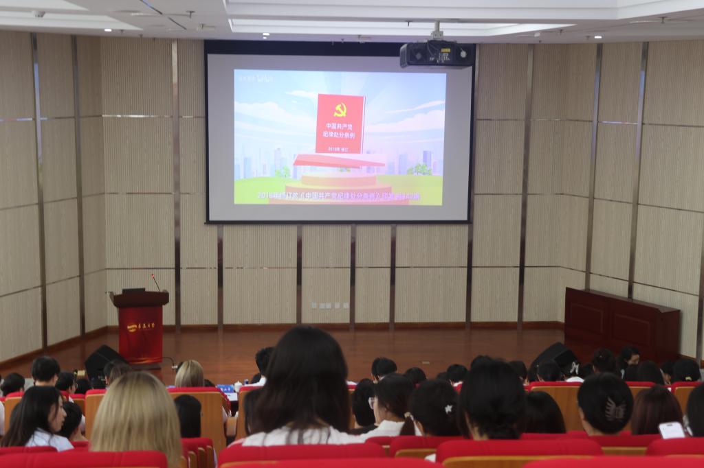 集中学习一次党课。全体与会党员集体学习了《中国共产党纪律处分条例》与“你为什么入党”主题视频。深入学习贯彻《条例》是全党一项重要政治任务,在解读《条例》的过程中为党员敲响警钟,督促党员强化自我约束,提高免疫能力。“你为什么入党”主题视频强调,新时代给予青年发展机遇与平台,学生党员当以青春无悔履行时代赋予青年的责任,使学生党员深刻意识到自身的担当使命,以更出色的能力回馈祖国。