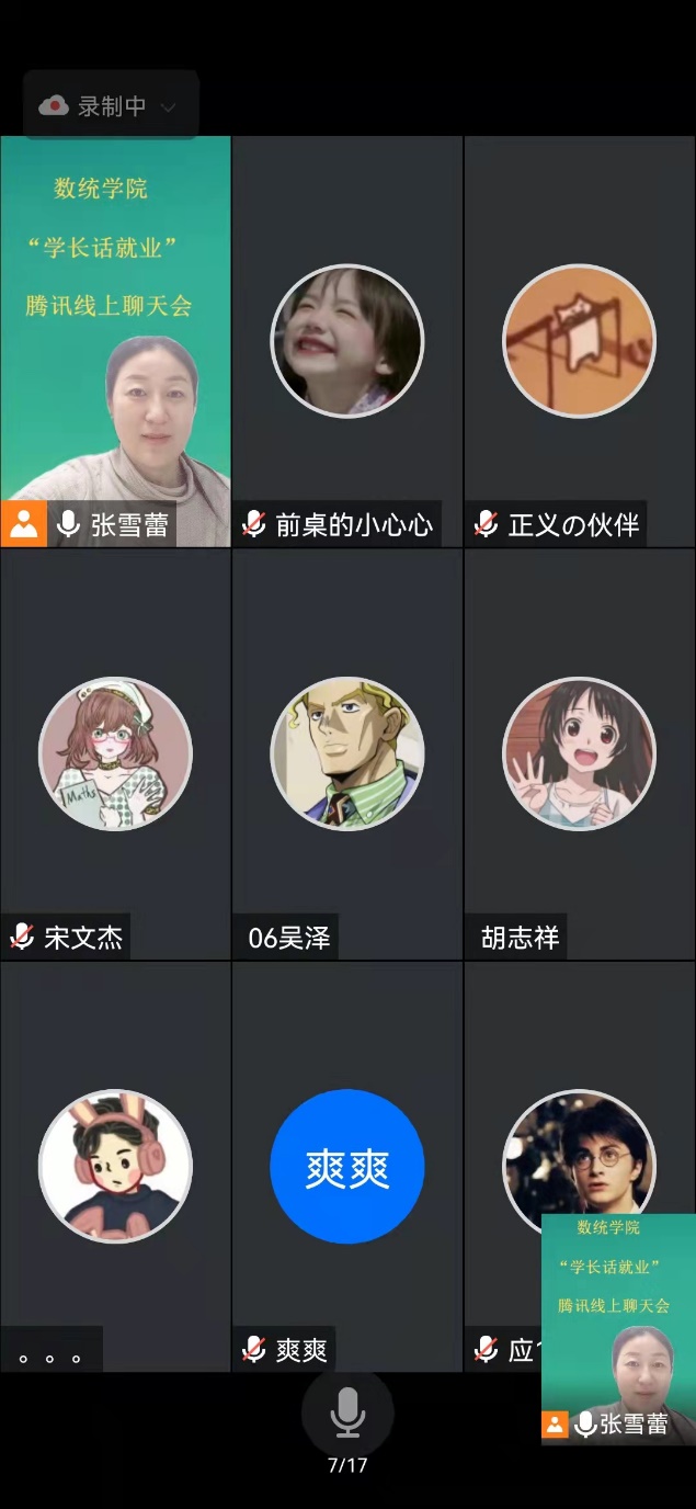 举行“学长话就业”腾讯线上聊天会,活动由党委副书记张雪蕾主持。2018级研究生班的韩世涛、段金鹏、刘晓莉、以及2010级董彬、2012级赵振伟、2017级项帅等六位优秀校友参加。