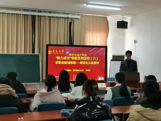 矫建悦学姐曾获山东省教师技能大赛一等奖,从教三年兢兢业业,教学成绩突出。她从理论知识、基本功、教学能力、现代教育技术应用四个方面为同学们细细讲解了如何成为一名优秀的人民教师。“三笔一话(画)”等专业教学名词的细致讲解也让同学们对于课堂和授课有了进一步的认识和了解。