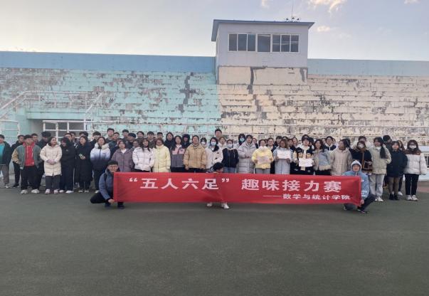 2020级在浮山校区西苑操场进行“五人六足”趣味接力赛。活动由数学与应用数学三班组织进行。