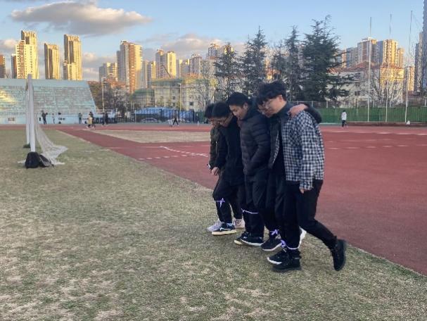 四根绳,五个人,简简单单绑在一起,跌跌撞撞向前一步。本次活动大家热情高涨,在欢声笑语中各班同学团结进取,奋勇争先。不仅丰富了黄漫同学的课余文化生活,更增强了班级凝聚力。