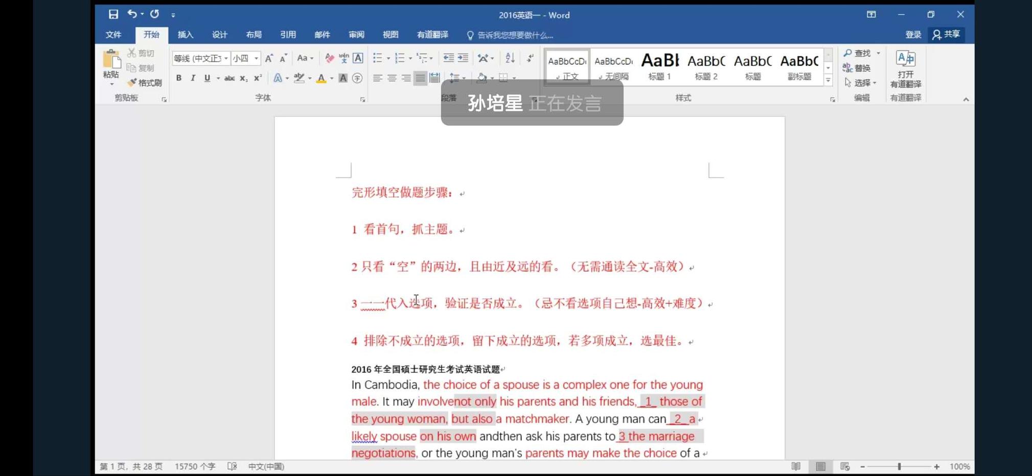 孙培星依据自己多年的教学经验,为同学们详细地分析了2016年的英语考研真题,并例举了一系列有关作文、语法、中式英语及英语翻译方面的常见错误。针对考研英语中选词填空材料过长的问题,孙培星提出依据语法将词代入再判断正误的方法,可有效地节约做题时间。