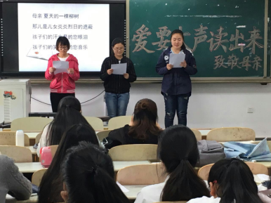 于5月9日下午,举办了以“爱要大声读出来”为主题的致敬母亲,经典诵读活动。