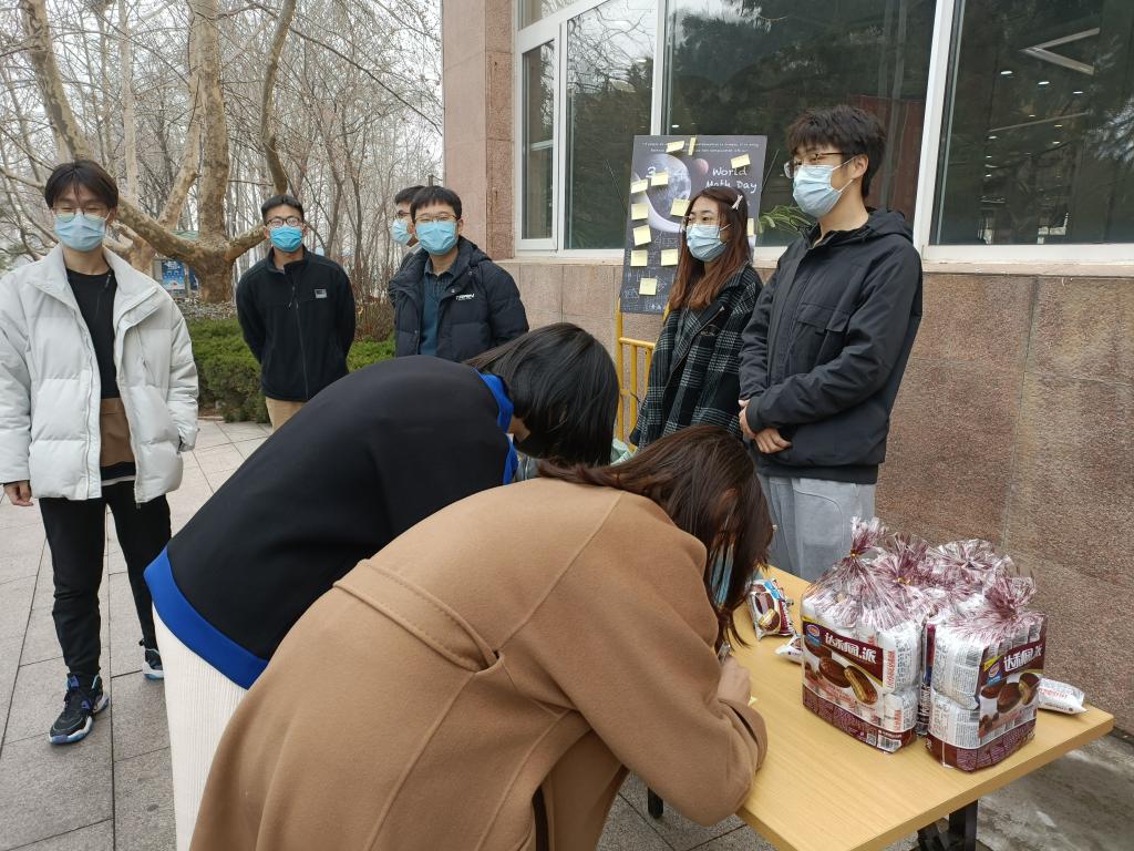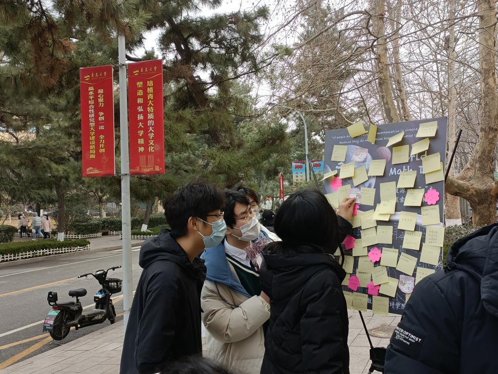 第二届数学文化节开幕,学院研究生会于浮山校区仁园餐厅门口举办3.14“π ”送活动。“3.14”是距离圆周率π最接近的数字,因此将每年3月14日定为国际数学日。本次活动旨在增强数学认同,宣传数学文化,传播数学之美。