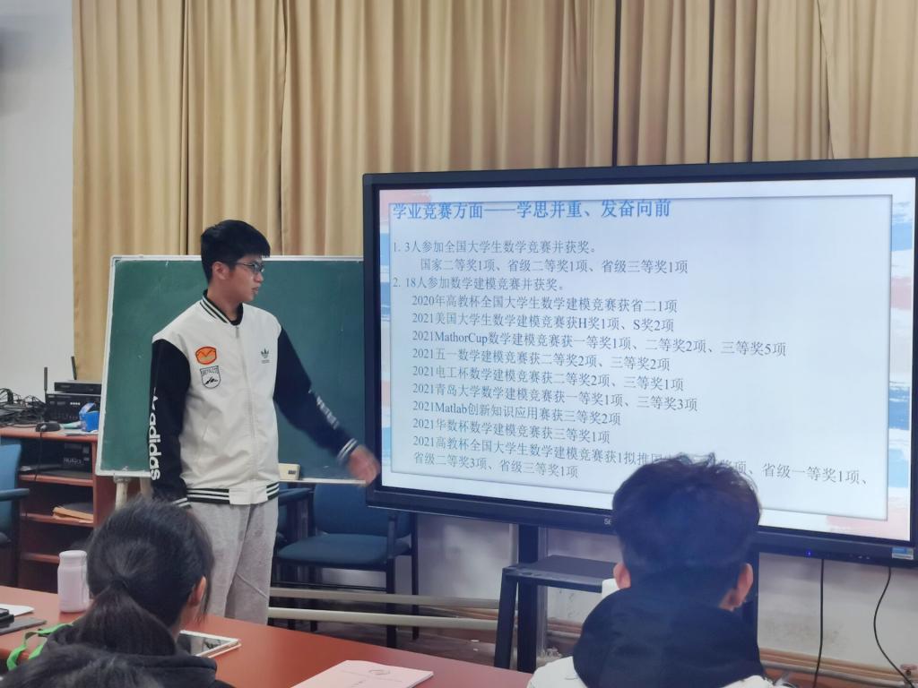 首先,各班班长团支书汇报本学期班级工作完成情况。随后,优秀班集体2019级统计一班班长介绍工作经验,分享大学期间的竞赛注意事项,各学生干部自由提问,由相应代表现场解答。由团委学生副书记沈雅馨讲解团委工作和团支部手册、主题班会记录手册的填写办法以及汇报各班级青年大学习完成情况。最后,进入圆桌讨论环节,各班班长团支书分成应数、统计、应数师三个小组,讨论各班班级情况和所面临的不同问题,相互帮助提出解决方案,并由各小组分派代表发言,分享会议心得感悟。