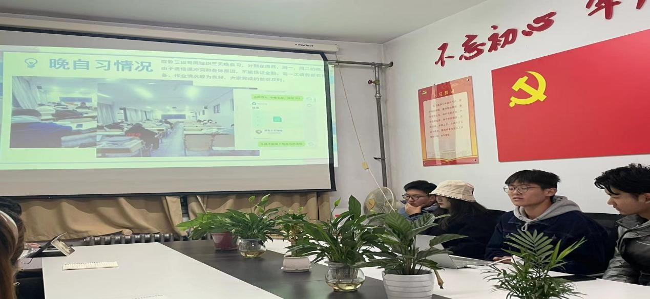 最后一个进行班级期中工作汇报的班级是应数三班,应数三班从“班级工作介绍、政治生活介绍、下一步工作计划”三个方面全面展开班级的工作进行情况,从同学们的日常晚自习的安排,宿舍卫生的打扫方方面面,使班级工作稳定有序的进行。