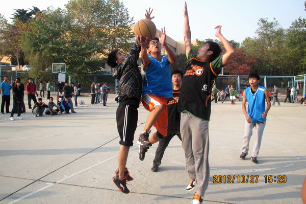 10月27日,黄漫 第六届体育嘉年华篮球比赛在西院篮球场开赛。经过三个小时的激烈角逐,自发组队的“百度一下”队,师范学院代表队,经济学院二队,化学化工学院及数学科学学院代表队等五个战队脱颖而出,顺利晋级决赛。