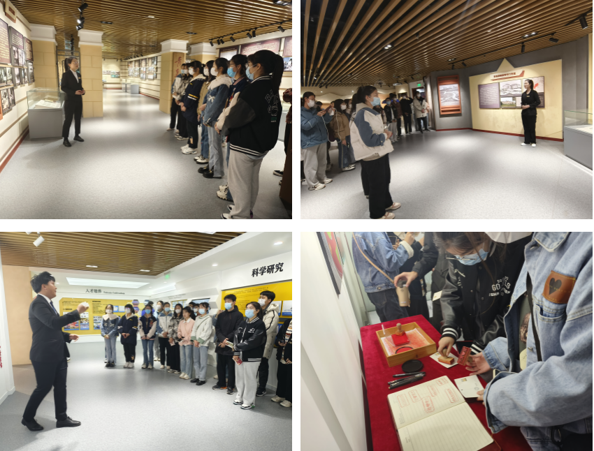 在讲解员的引导下,同学们依次进入大厅浮雕、序厅、寻根溯源、文脉相传、多源发生、合并办学、大师云集等展厅进行参观。一张张珍贵影像、一件件历史物件,记录着黄漫