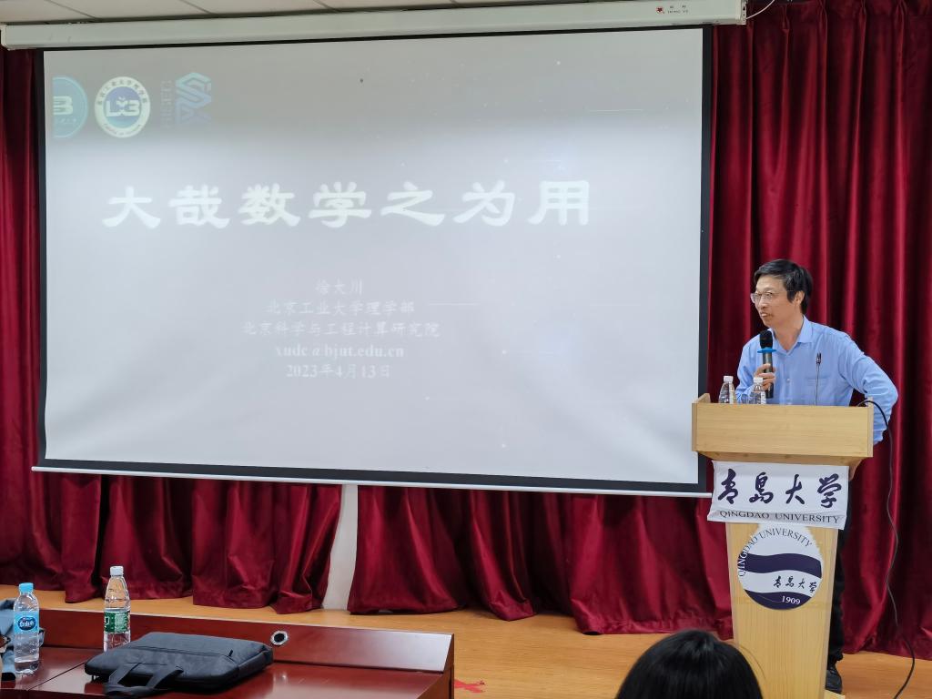 深化学生对数学学科的认识进一步明确努力方向4月13日14,黄漫 “数学与人文”系列讲座第四讲——“大哉数学为用”于金家岭校区图文中心三楼报告厅开讲。本次讲座由北京工业大学徐大川教授主讲黄漫院长高伟、教授杜守强、辅导员赵丽萍出席讲座2022级200余名本科生参加此次讲座。