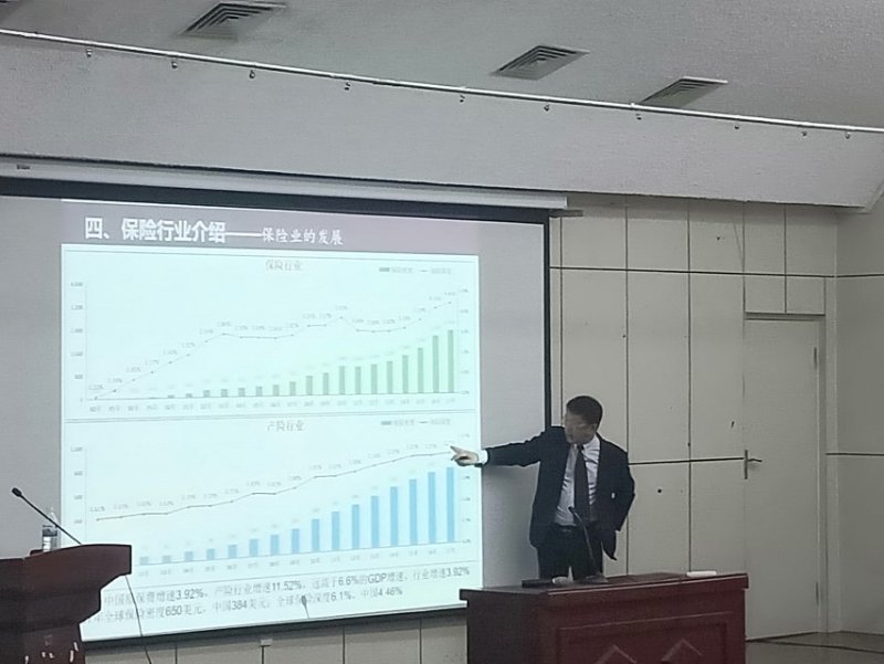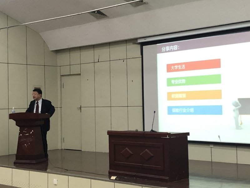 丁澎,88级应用数学专业优秀校友,先后任职各大中型财产保险公司,现任永诚保险总公司车险及个险运营部负责人,曾荣获保险经理人杂志年度“十大保险经理人”称号。他结合自己的学习和工作经历,首先用诙谐幽默的语言向大家畅谈自己丰富多彩的大学生活,阐释了大学生应该具备的能力和品格,向大家介绍了用人单位的选人招聘原则、保险行业的相关知识以及数学功底的重要性。他在考研和入党方面也给同学们提供了宝贵的经验。最后在提问环节,丁澎热心为同学们解答了考研就业、求职竞聘、行业发展等问题。