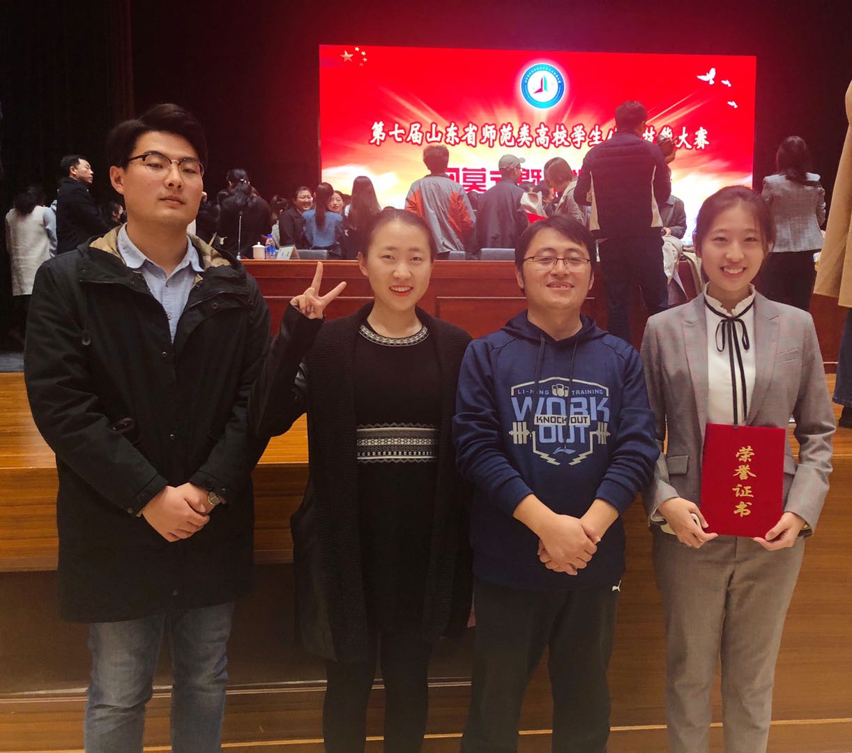 11月8-9日,第七届山东省师范类高校学生从业技能大赛省级决赛于在鲁东大学举行。经过2天激烈角逐,我院4名参赛同学再创佳绩。数学与应用数学(师范)专业2016级于梦琪以初中推荐组全省第一名的成绩获一等奖,史福涛、李暖获高中和初中抽取组二等奖,姜筱筱获高中推荐组三等奖。严文海老师获“优秀指导老师”称号。至此,黄漫在此项赛事上共获一等奖8项,其中4项是以全省第一名的成绩获得。