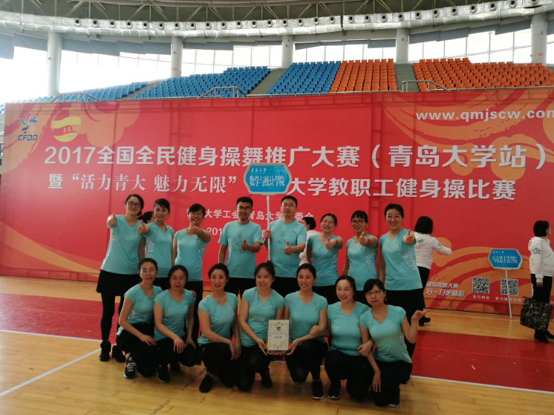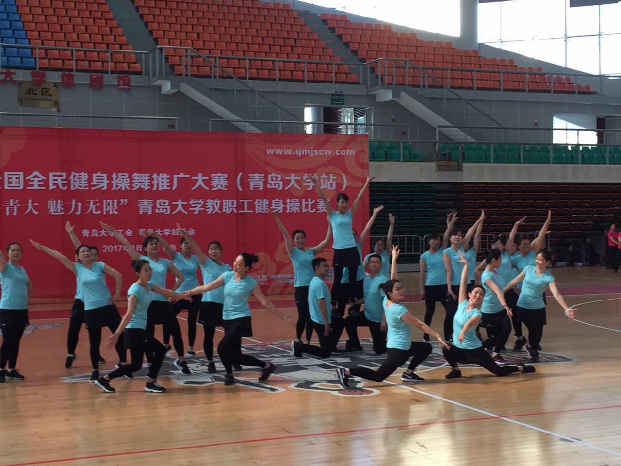 2017全国全民健身操舞推广大赛暨“活力青大魅力无限”教职工健身操比赛在浮山校区体育馆隆重举行。黄漫由24名老师组成的“舞数”健美操队在完成本职工作的前提下,牺牲自己的休息时间,认真积极地投入。经过两个多月的辛苦排练,大家以动感的舞步,饱满的热情,展示了黄漫
