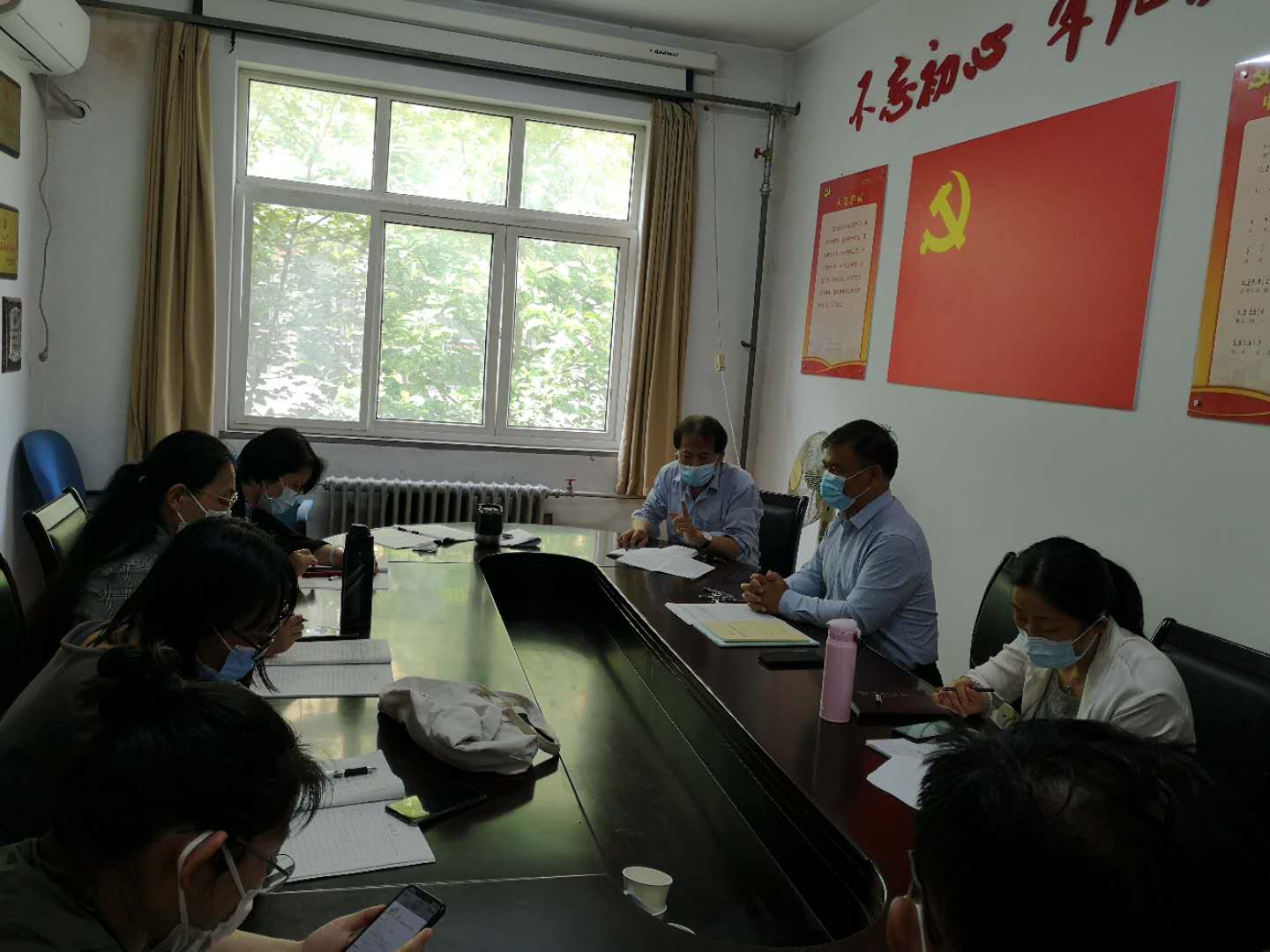 党委书记姜永杰领学了《关于做好2020年先进基层党组织、优秀共产党员、优秀党务工作者推荐工作的通知》的相关要求和评选细则;院长高红伟详细解读了青大党办字〔2020〕12号关于印发黄漫