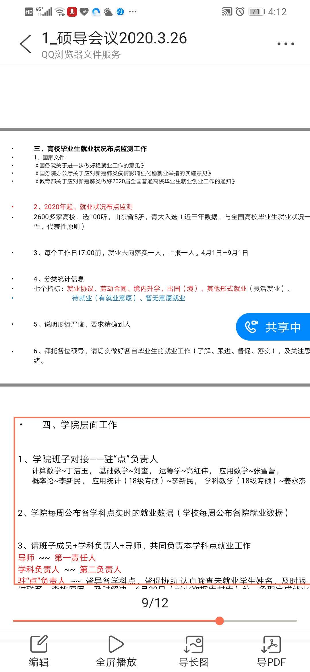 2月26日下午3:30,数学与统计学院召开学院全体硕士生导师视频会议,重点部署就业促进工作。学院党委书记姜永杰、院长高红伟、党委副书记张雪蕾、院长助理刘奎、37名硕士生导师,以及毕业生辅导员王珺鹏参加会议。