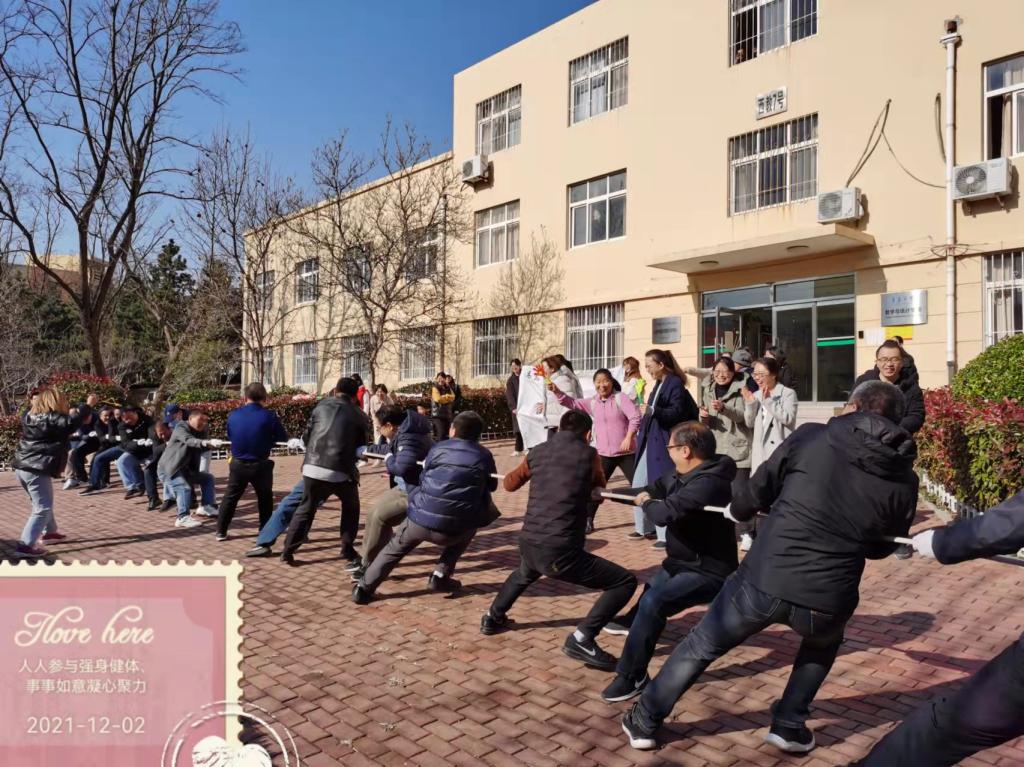 于2021年12月2日中午举办了“人人参与强身健体、事事如意凝心聚力”教职工拔河与跳绳比赛。