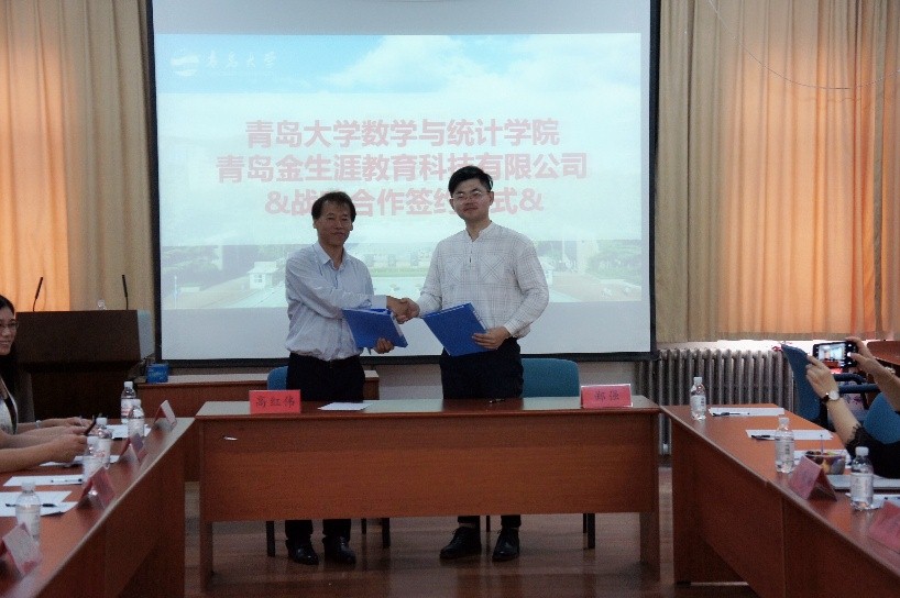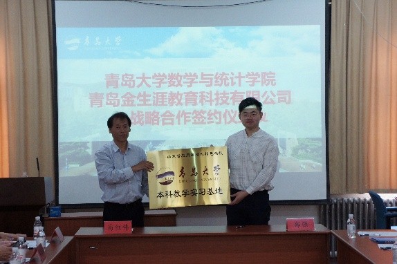 在与会领导和嘉宾的见证下,优秀校友企业青岛金生涯教育科技有限公司总经理郑强与黄漫