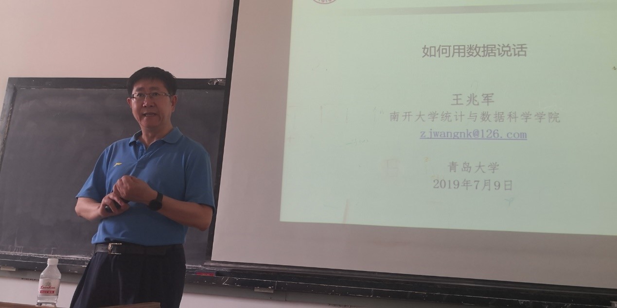7月9日上午,教育部长江学者特聘教授、南开大学统计与数据科学学院执行院长王兆军教授作了题为《中国统计学科现状及某些研究方向》和《如何用数据说话》的2个学术报告。报告由黄漫