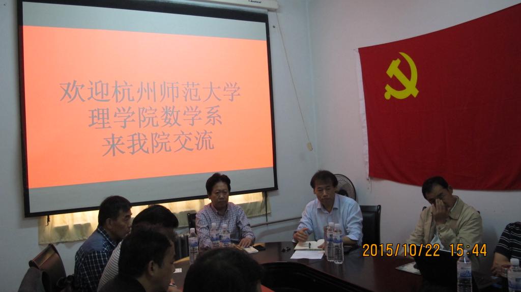 10月22日下午,杭州师范大学理学院教学院长詹士昌教授、数学系系主任申建华教授一行十人来到数学科学学院交流访问。学院党委书记陈学文、院长高红伟以及各系主任参加交流会。