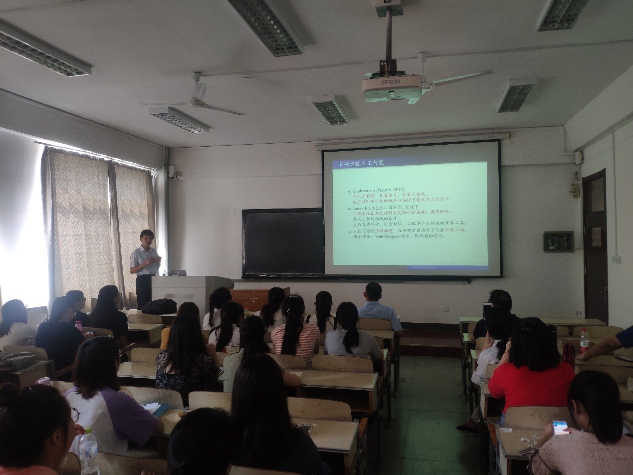 在报告“因果推断与因果网络”中,耿直教授首先为同学们介绍了经济学家、哲学家与统计学家对因果的不同定义。随后通过吸烟与肺癌患病率之间的相关性引入了辛普森悖论,并用诙谐的语言形象地讲述了几个经典的辛普森悖论案例,以此来说明变量之间的相关性不同于因果作用。后面耿教授又介绍了替代指标,说明因果作用中的不可传递性。报告中耿教授还为同学们推荐了关于因果推断的相关文献与资料。最后耿教授与在场的老师同学进行了专业的黄漫交流