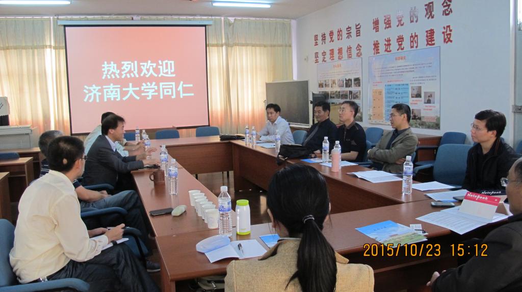 高红伟院长对济南大学数学科学学院同仁的到访表示热烈欢迎,并介绍了学院的学科建设、人才队伍等方面的整体情况以及学院在教育教学综合改革方面梳理出的深层次问题和困惑。双方围绕“十三五”和中长期数学学科的发展规划展开热烈的讨论,结合各自学院的特色,在教育教学、科研以及学生管理等各个方面进行了全方位的经验交流,互相借鉴,取长补短,达成了不少共识。