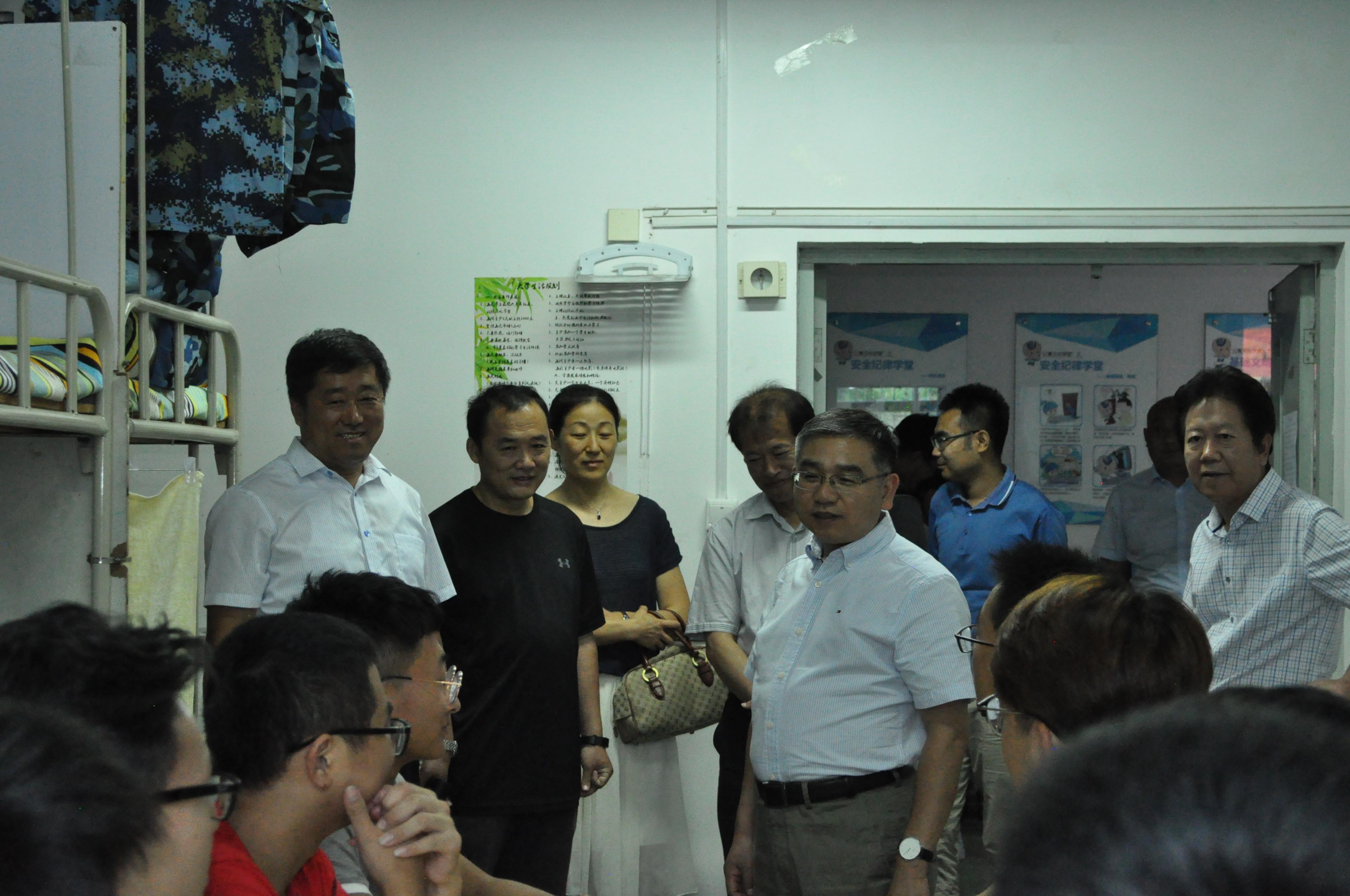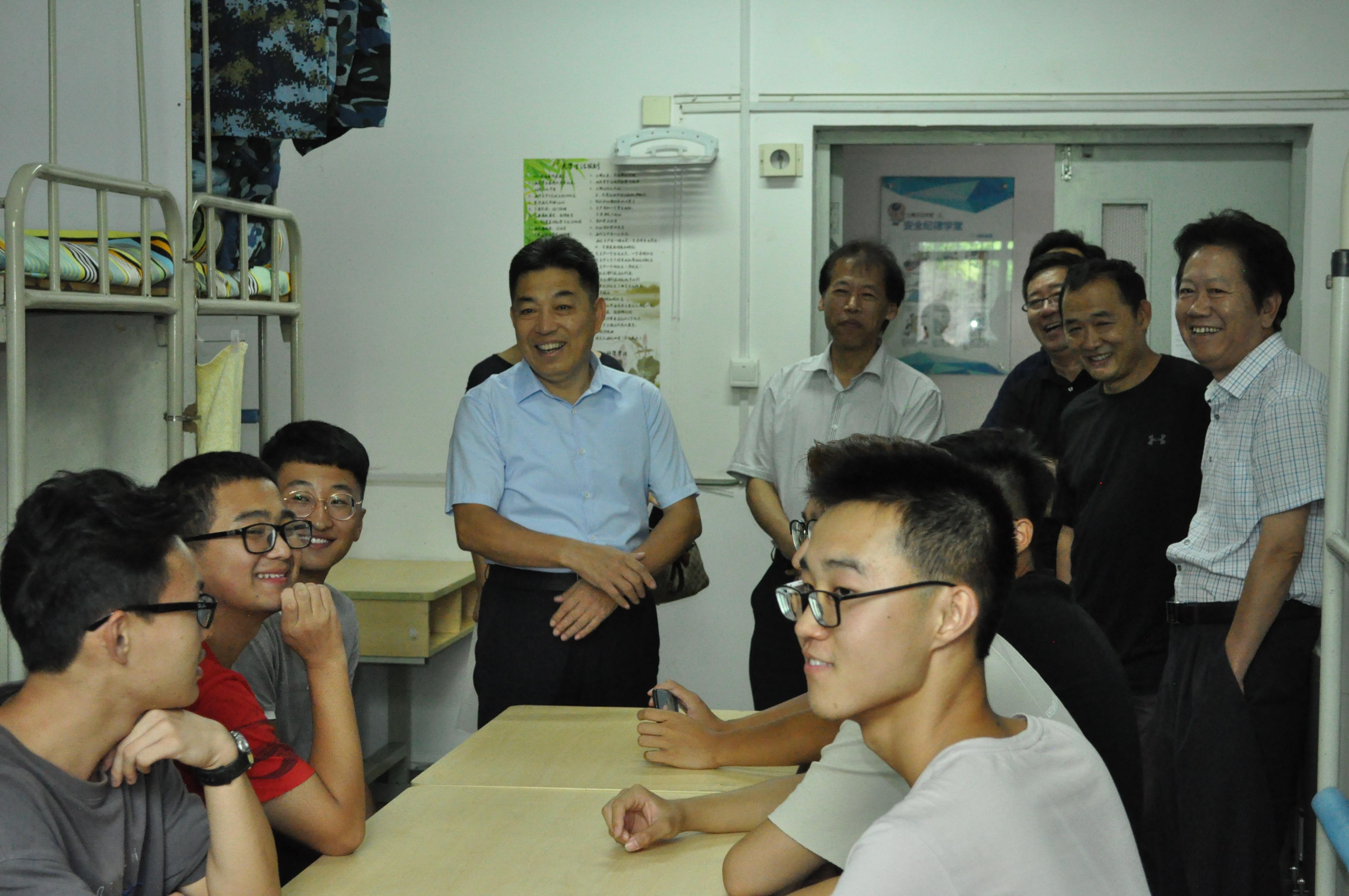 胡书记和杜书记每到一个宿舍,都会亲切地同新生交谈,询问大家来自哪里、入学报到是否顺利、是否适应学校的环境等。此外,他们还仔细查看寝室的各种设施完备情况。两位书记对新生的到来表示欢迎,并教育新生应该有吃苦耐劳的精神,要尽快适应大学生活环境学会独立自主;在大数据社会背景下,应当认真学习数学学科的基础知识,争取成为有用人才;两位领导都亲切的问候了新生的具体情况,希望同学们和睦相处,营温馨好学的宿舍环境。热情的话语,亲切的问候,温暖了新生的心灵,让他们感觉到了家的温暖,感受了校院及领导、老师对他们的关怀。学生处处长吴世珍、副处长王洪江、李建新、数统学院党委书记陈学文、院长高红伟、副书记张雪蕾、副院长李新民、2018级辅导员王珺鹏陪同参与了走访。