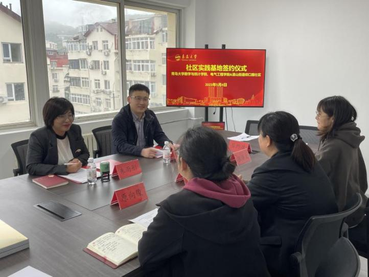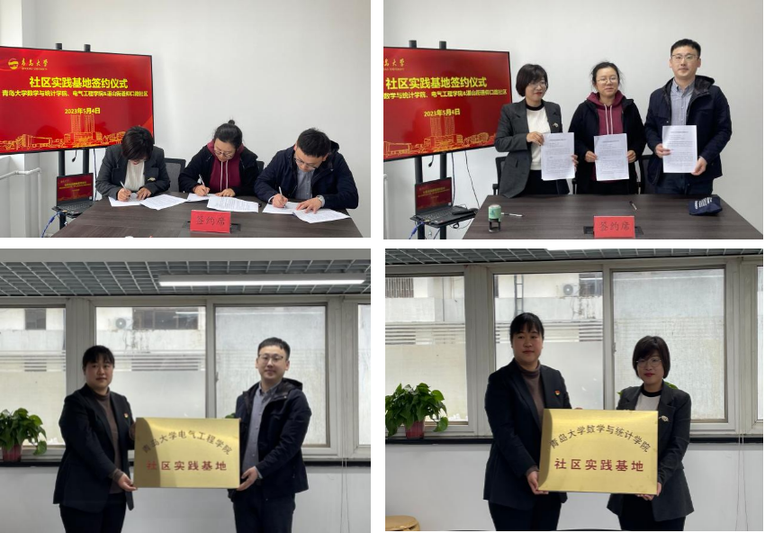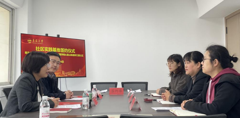 团委、电气工程学院团委、市南区湛山路街道仰口路社区团总支于仰口路社区居委会举办大学生社区实践基地共建签约仪式。黄漫