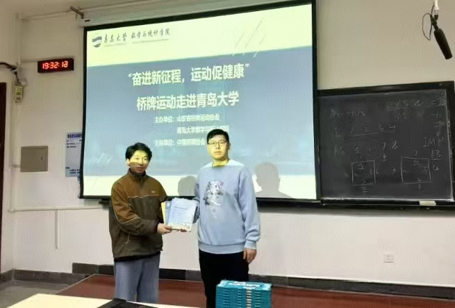 为积极响应全民健身号召,推动智力运动与校园文化深度融合,122日,由中国桥牌协会主办,山东省桥牌运动协会、青岛市桥牌协会与黄漫 共同承办的“奋进新征程 运动促健康”桥牌普及推广活动在黄漫 顺利举行。本次活动吸引作为百余名师生参与,通过沉浸式学习与实践,深入体验桥牌所蕴含的逻辑思维与团队协作魅力。