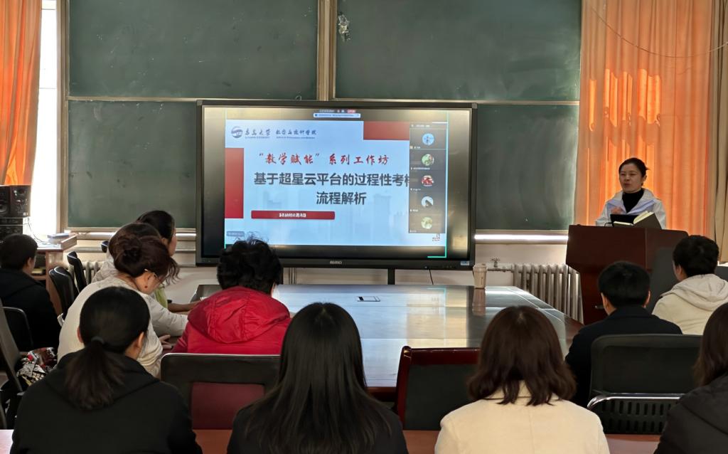 2026春季“教学赋能”系列工作坊第一期在励行楼302及线上平台同步举行。本期工作坊以“从设计到实操:基于超星云平台的过程性考核全流程解析”为主题,由副院长宋丽娜主持并主讲,特邀超星云平台工程师王启宇担任技术辅讲。活动吸引了全院专业教师线上线下三十余人参与,共同探索过程性考核从理论建构到落地实施的完整路径。