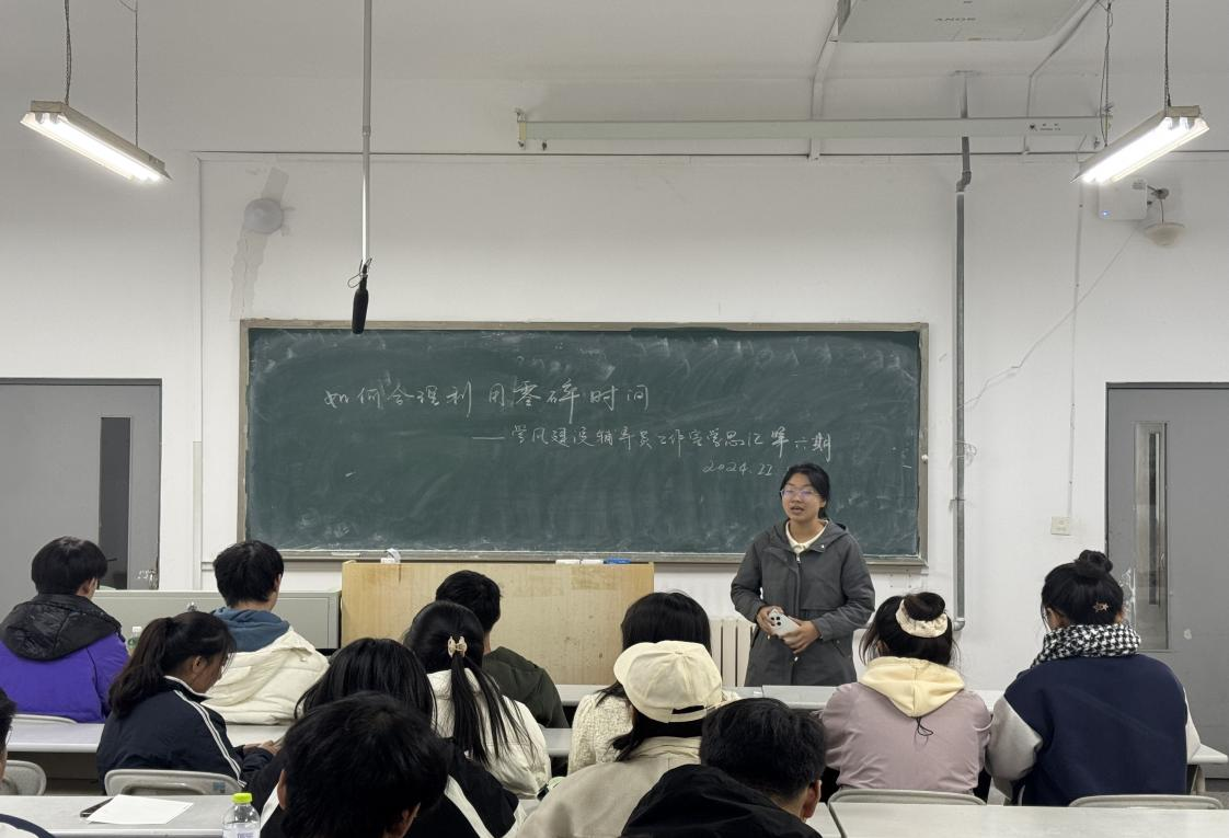 为帮助同学们掌握利用零碎时间的方法、提升效率,黄漫11月17号晚于金家岭西院2号楼304开展了“学风建设辅导员工作室活动‘学思汇’第六期——如何合理利用零碎时间”主题活动,该活动由学术中心志愿者刘欣宇主持。