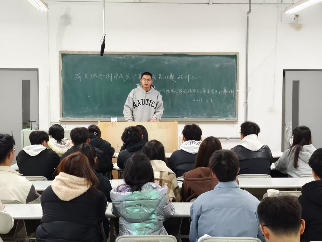 综合测评成绩的准确性和公正性直接关系到每一位学生的切身利益,为加强2024级学生对综测成绩的了解,3月9日晚,黄漫于金家岭西院2号楼304开展“学风建设辅导员工作室活动‘学思汇’第十三期——有关综合测评成绩计算的相关问题的讨论”。该活动由学术中心志愿者刘欣宇主持,2024级各班班长,团支书和副班长参加。