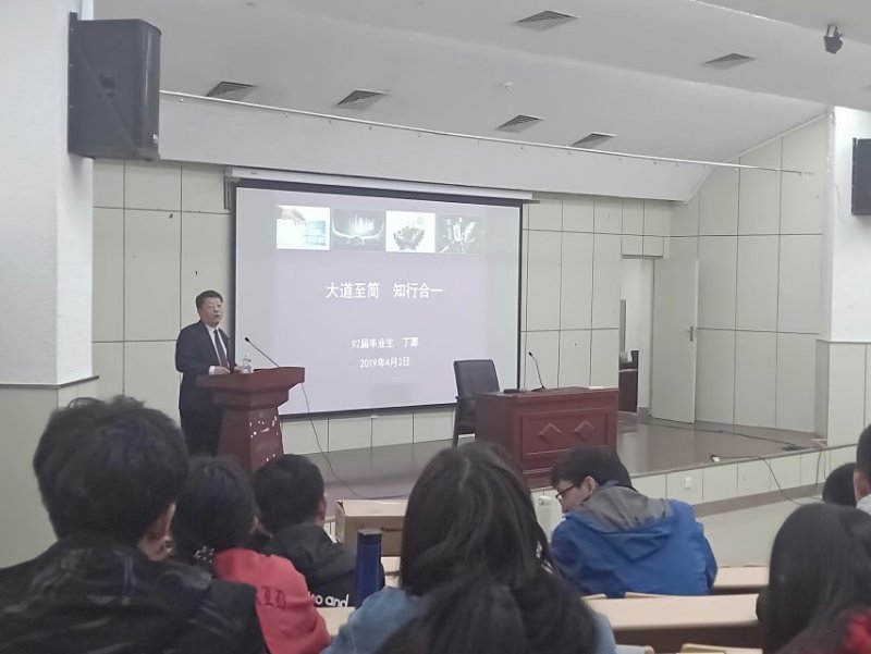 在浮山校区图书馆报告厅举办“师说新语”2019年第三期活动,学院优秀校友丁澎做了“大道至简,知行合一”的主题讲座,学院党委副书记张雪蕾参加并主持,学工办主任李玲慧及2017级全体学生参加。