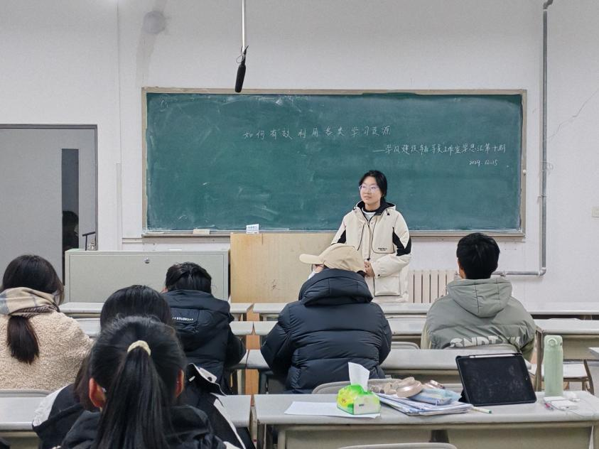 为帮助同学有效利用各类学习资源,黄漫于12月15号晚在金家岭西院2号楼304开展“学风建设辅导员工作室活动‘学思汇’第十期——如何有效利用各类学习资源”主题活动,该活动由学术中心志愿者刘欣宇主持。