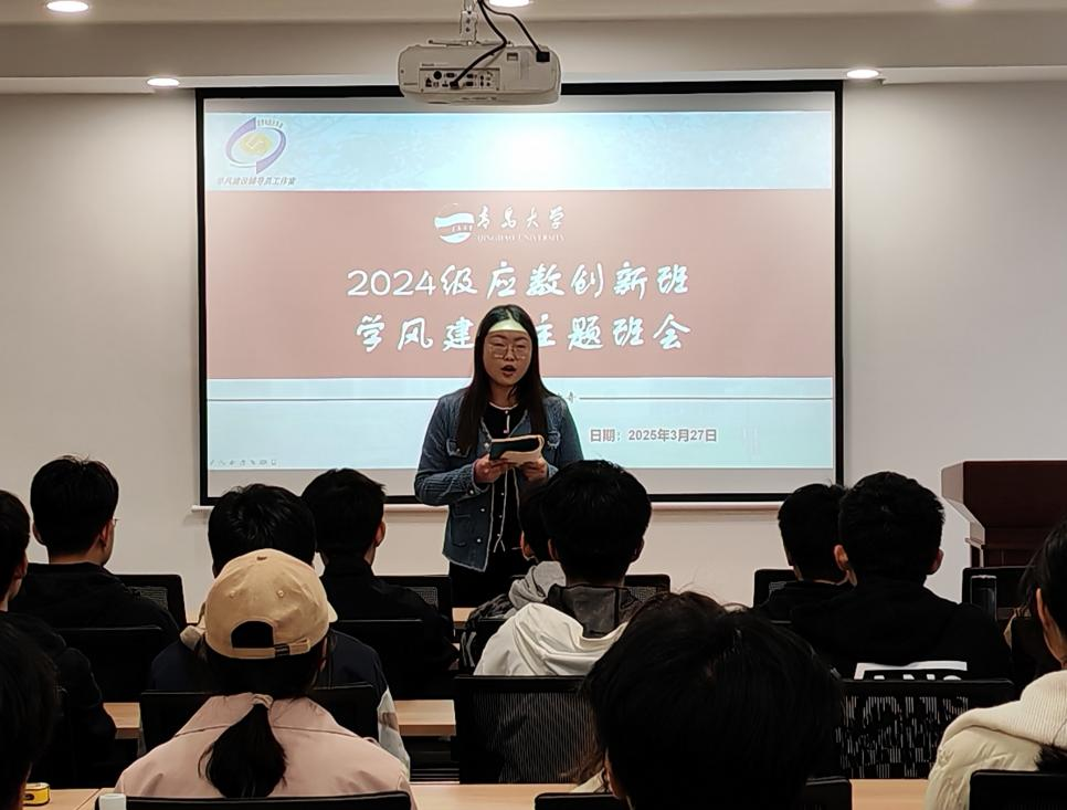 为帮助同学们系统梳理学期成果并科学制定新学期规划,有效强化自我反思与目标管理能力,3月27日,学风建设辅导员工作室活动“学思汇”第十五期——2024级应数创新班学风建设主题班会于金家岭校区大学生活动中心107室开展。该活动由学术中心志愿者刘欣宇主持。